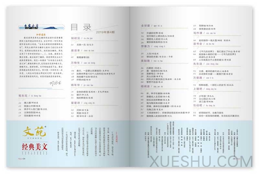 《文苑·经典美文》主要栏目:真、智、趣、人、美、风雅颂、诗礼乐、经典主题、阅读留言。